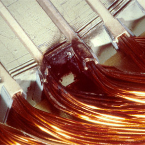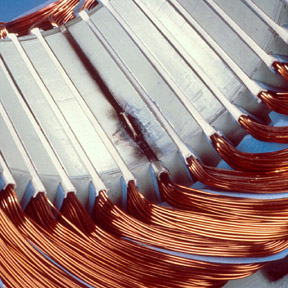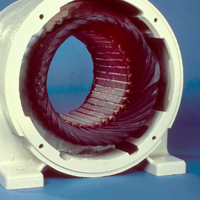 Unfavorable operating conditions–electrical, mechanical or environmental–can dramatically shorten the life of a three-phase stator winding. The winding failures illustrated below typify what can happen in such circumstances. They are shown here to help you identify the causes of failure, so that, where possible, you may take preventive measures.Compare the new stator winding (right) with the failed windings pictured below.